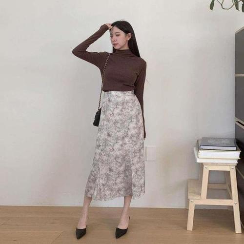 [다잇템_패션]여성 플라워패턴 인어공주 하이웨스트 롱스커트
