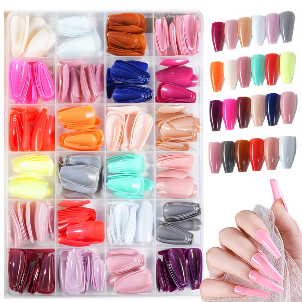 TEMU 576 발레 미디엄 형태의 네일, 단색 네일 슈트, 컬러 솔리드 인조 네일 풀 커버리지, 사용하기 쉬움, 마나 살롱 아트에 적합, 여성용 네일 이상적인 선택