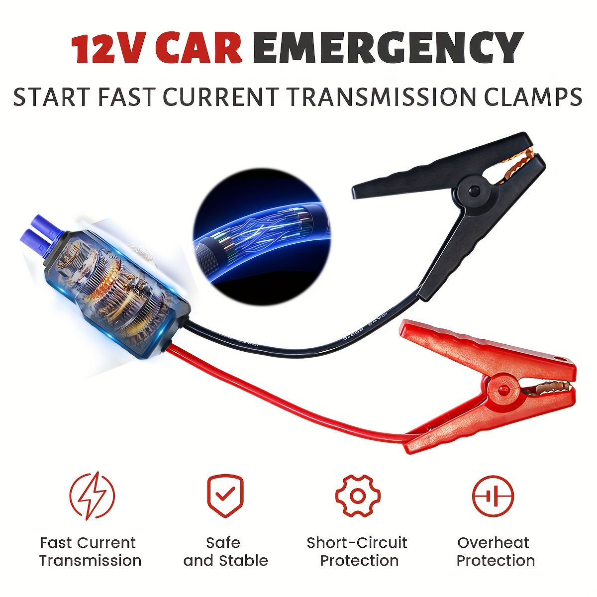 TEMU 12V 차량용 비상 점프 스타트 케이블, 배터리 클램프 스타터 와이어, 전원 연결 클램프, 자동차 부품, 과열 및 단락 보호 기능 설계, 빠른 전류 흐름, 안전하고 신뢰성 있는 제품, 대부분의 차량과 호환 가능