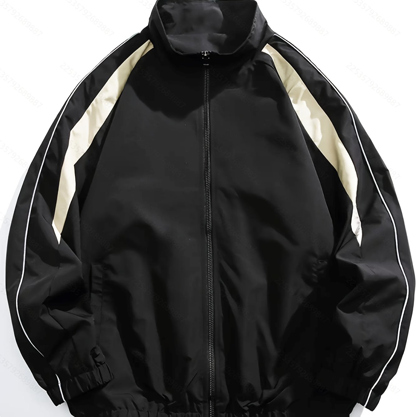 TEMU 남성 캐주얼 경량 재킷 - 봄/가을 컬러 블록 지퍼, 탄성 커프스, 세탁기 사용 가능, 회색 및 베이지색.