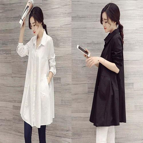 [셀럽하우스]여자 GURA6285 A라인 롱 남방 원피스 셔츠 체형커버 임부복