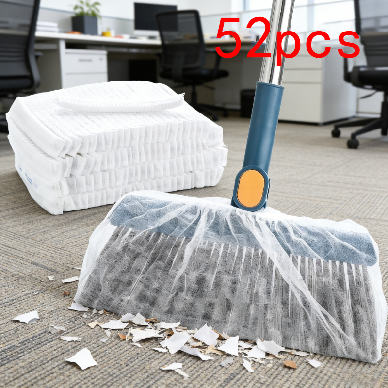 TEMU 일회용 빗자루 커버 52개, 필수 가정용 먼지 닦는 천 커버, 정전기로 머리카락과 먼지를 끌어당겨 간편한 청소, 다기능 빗자루 먼지 닦는 커버, 게으른 빗자루 커버, 가정용 대걸레용 교체용 청소 행주, 가정용 청소 용품, 재사용 가능한 청소 천