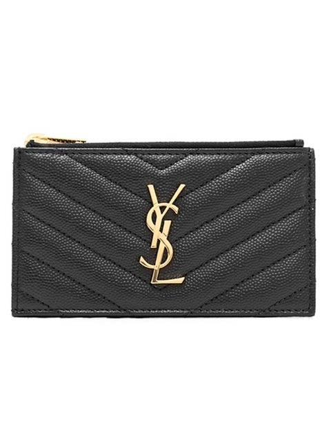 생로랑 그랑 드 뿌드르 엠보스드 레더 골드 모노그램 프라그먼트 지퍼 카드 케이스 블랙 607915-BOW01-1000