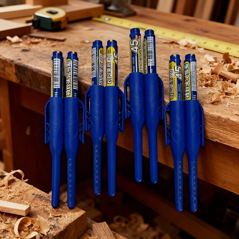TEMU 8개입 딥 홀 마커 세트 | 45mm 긴 니브 솔리드 목수 연필 (캡 & 스케일 포함), 방수 & 퇴색 방지 마킹 도구 (목공, 건설, 목공 및 프로젝트용)