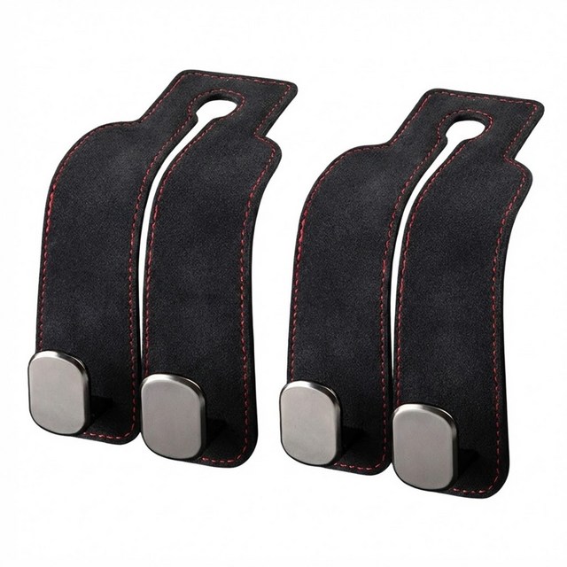 SEAMETAL 듀얼후크 자동차 후크걸이 헤드레스트 고리 걸쇄 행거 휴대폰거치 가방 봉지, 인조 스웨이드+메탈소재, 블랙, 2개