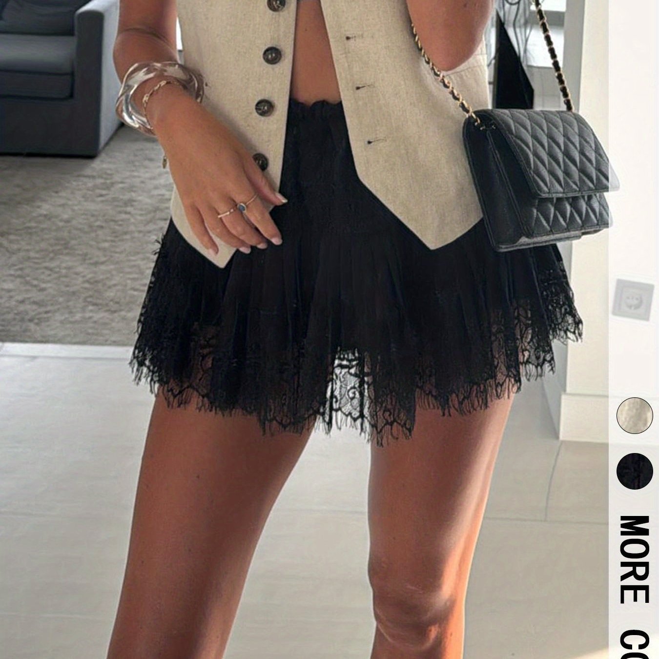 TEMU 여성용 숏 레이스 스커트 플리츠 밑단 드레스 - 우아한 숏 길이, A라인 파티 드레스, 봄 여름 가을용, 세탁기 사용 가능 웨딩 게스트 드레스, 프롬 드레스
