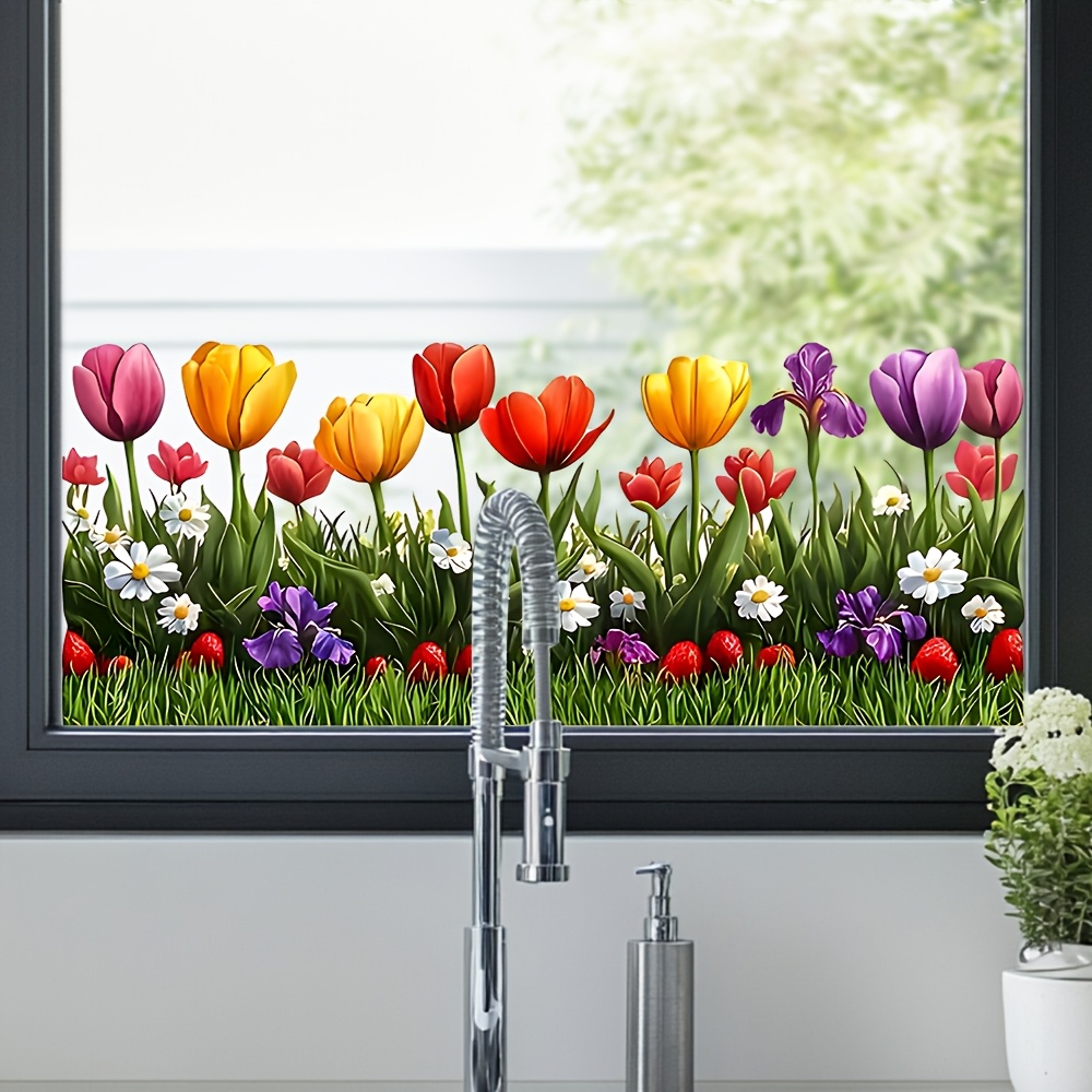 TEMU 1개 25*60cm 봄 튤립과 꽃무늬 유리 스티커 - 생생한 멀티컬러 꽃 테마 데칼, 양면 탈부착식 창문 및 가정용 유리 장식, 기분 좋은 정원 스타일 가정용품