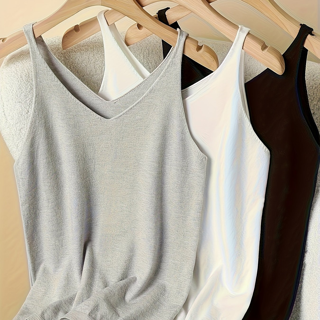 TEMU 3개 세트: 여성용 심플 브이넥 캐미솔, 레이어드 또는 단독 착용용 사계절 활용도 높은 탑, 슬림핏의 편안한 베이직 상의