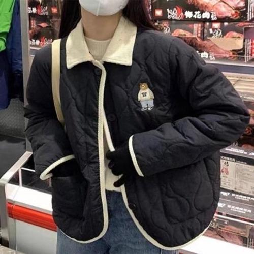 [엄지척]곰돌이자수초경량점퍼 곰돌이와펜장식누빔자켓(블랙)_20338910_667501