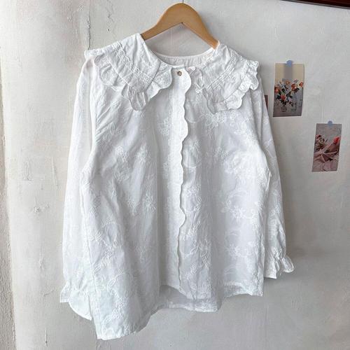[패션시그널] 자수 코튼 레이스카라 셔츠 FS004456
