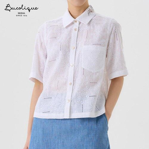 [비꼴리끄]린넨 자수 원단 셔츠 블라우스 B262WB1070