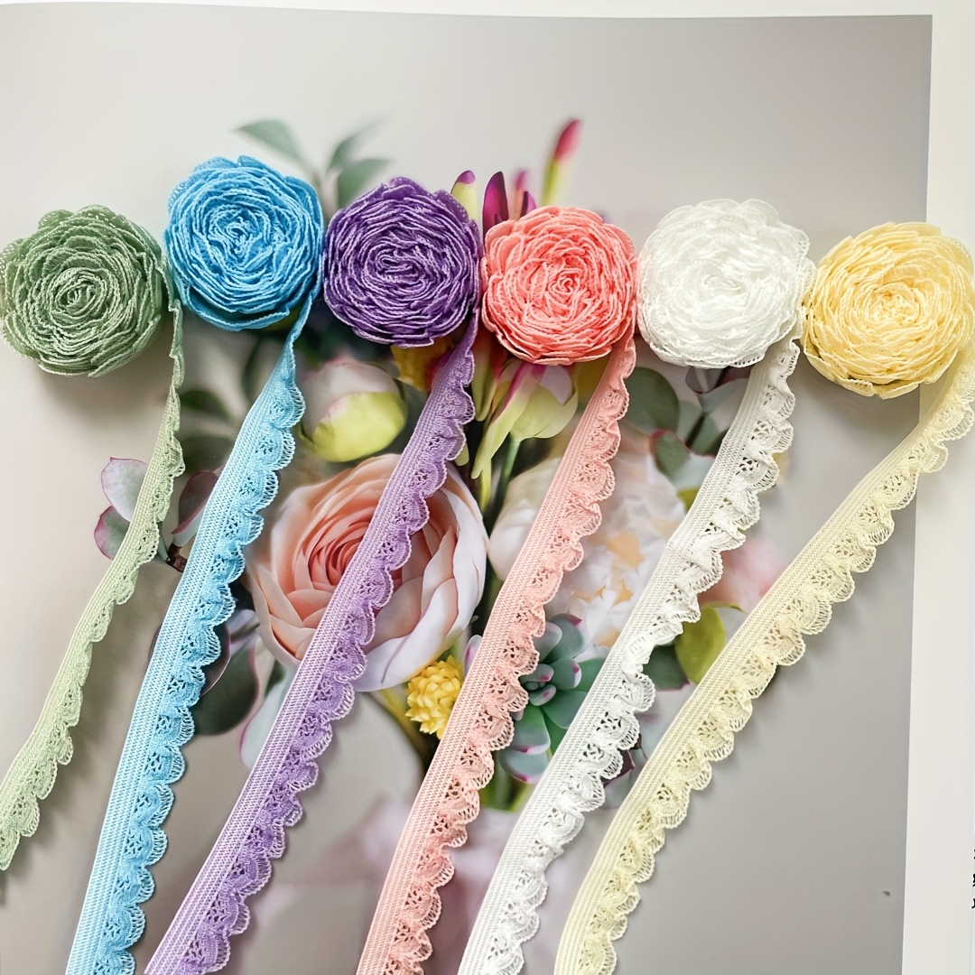 TEMU 6개 탄력 있는 러플 레이스 트림 리본 세트 - 다양한 색상 (민트 그린, 스카이 블루, 라벤더, 핑크, 화이트, 옐로우) 1 야드 x 1.3cm 스트레치 탄성 밴드와 러플 레이스 가장자리, 공예용 폴리에스터 웨빙 리본, 바느질, 인형 액세서리, 뜨개질 및 자수 장식, 인형 꾸미기 | 복잡한 디테일링, 레이스 원단