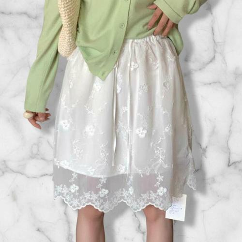 [미라클세븐]여성용 일상 필수 아이템 꽃 자수 레이스 밴딩 미니 스커트