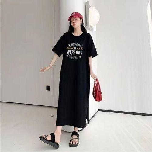 이쁘다요 빅사이즈 편한 반팔 외출 밑단트임 원피스 복 WFLMPPL
