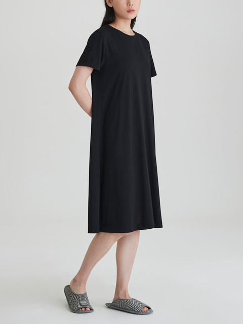 [자주 라이프웨어] [JAJU/자주] 여 소프트 반팔 파자마 원피스_블랙