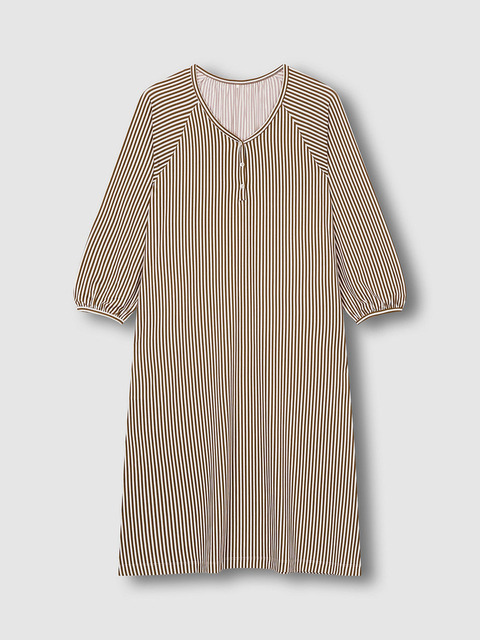 [자주 라이프웨어] [JAJU/자주] 여 피치스킨 7부 셔링 파자마 원피스_라이트브라운