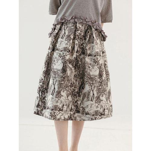 [데코]자카드 프린트 롱 스커트P1G21WSK060_DG