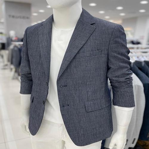 [트루젠]남성 프리미엄 모직 린넨(마) 혼방 네이비 여름 캐주얼 콤비 자켓_JK