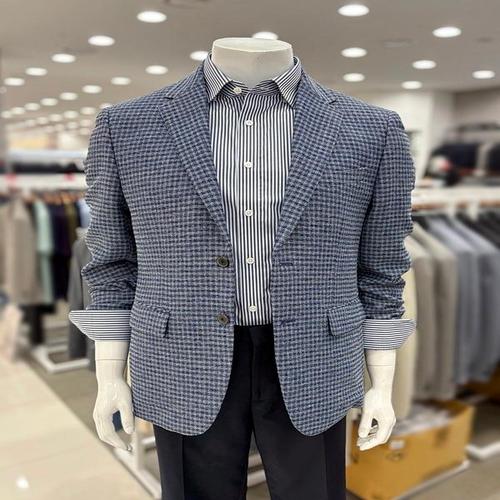 [트루젠]남자 여름 홑겹 블루 깅엄체크 패턴 포인트 이지케어 캐주얼 콤비 자켓_JK