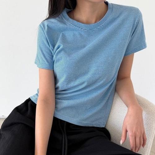 [굿쇼핑몰_의류]잔줄무늬 여자 반팔티 1P 데일리 기본 반소매 티셔츠