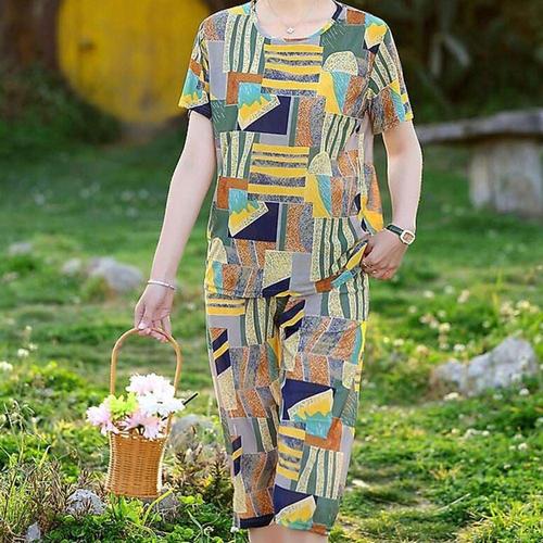 시원한 쿨 냉감 반팔 원피스 상하세트 패턴 수면잠옷 WFIUE0Z