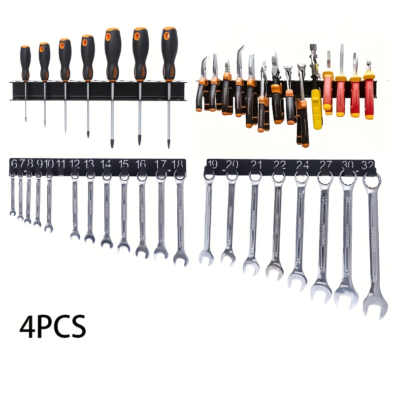 TEMU 4개입 고강도 금속 렌치 & 스크루드라이버 & 플라이어 정리대 벽걸이형 공구 보관 랙 - 고강도 차고 작업장 정리함 (걸이 후크 포함)