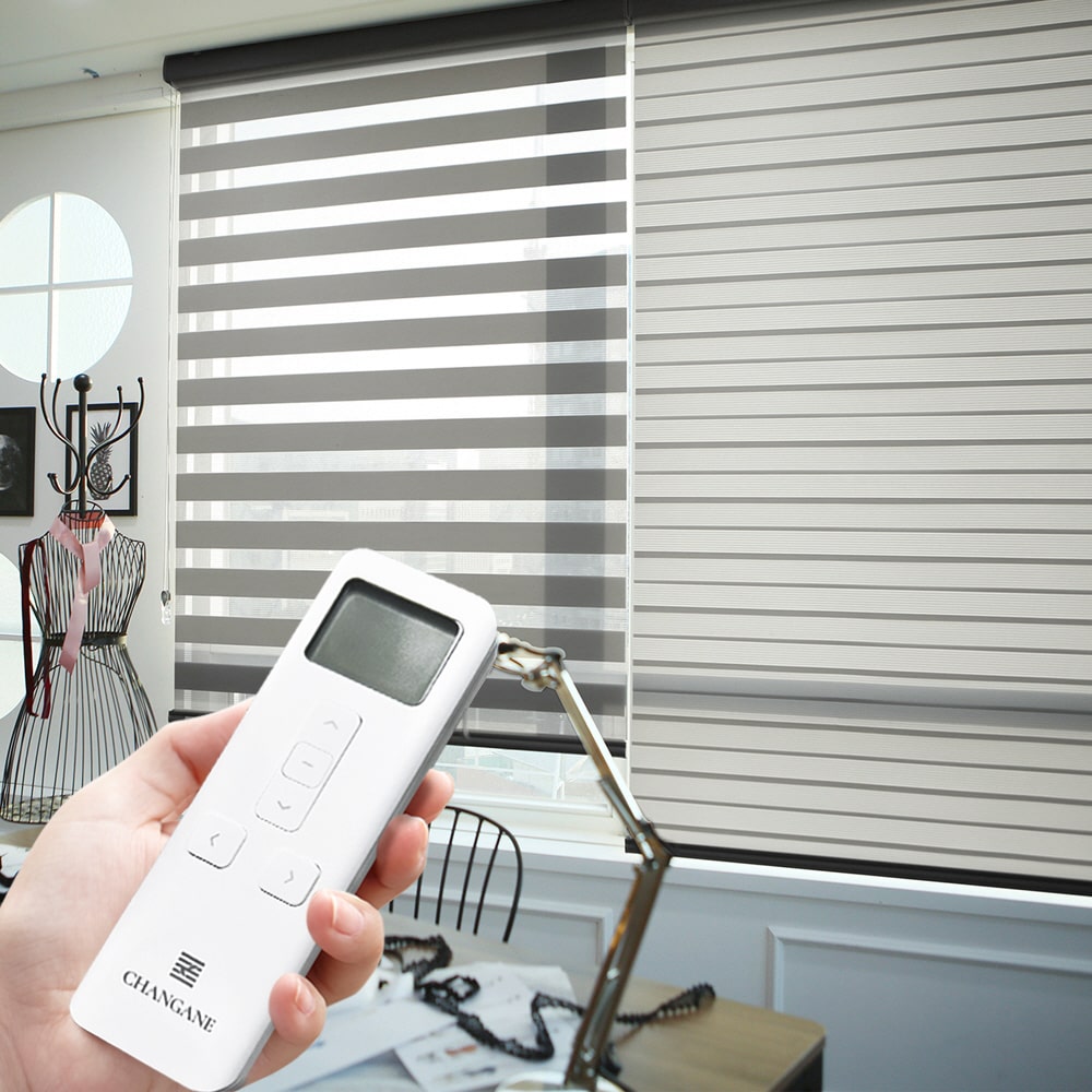 Decopedia Windows용 맞춤형 듀얼 블라인드 전동 스마트 창 블랙아웃 롤러 주야간 더블