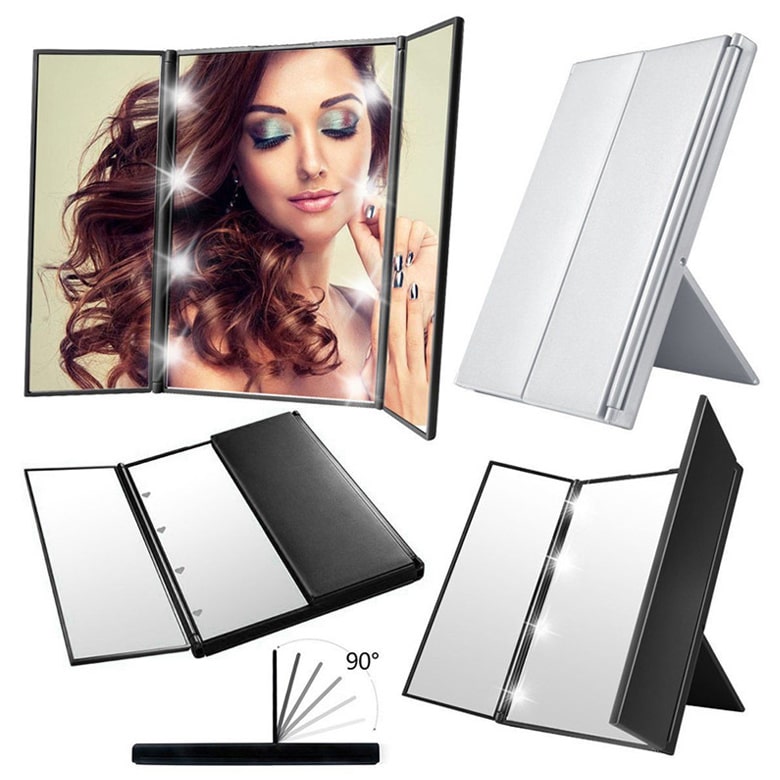 뷰센스 LED 조명 3단 접이식 탁상 화장 거울 소형 BS034B