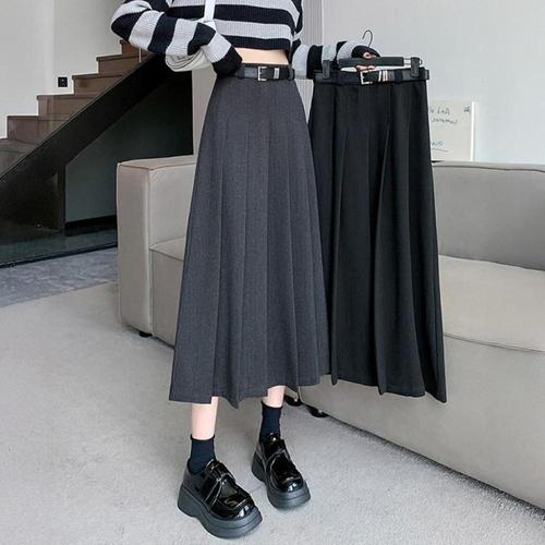 [오너클랜]인기상품 모직 여성 롱 스커트 와이드 정장 하객룩 주름 치마 [WFLWZKZ_260227]