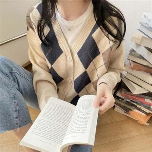 [셀럽하우스]가디건 QUTB9661 아가일 브이넥 봄가디건 cardigan 니트 정장