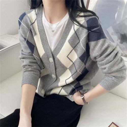 [셀럽하우스]니트 TWQM1284 캐쥬얼 가디건 정장 아가일 브이넥
