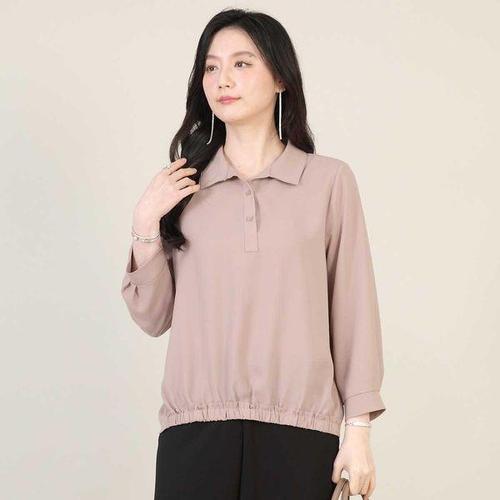 [애비뉴투지]엄마옷 윙카라 단추 반오픈 밑단 밴딩 여성 봄 가을 8부 긴팔 정장 블라우스 B04625
