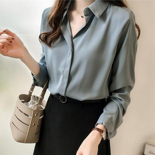 여성 새틴 셔츠 긴팔 블라우스 정장상의 샤이닝 남방