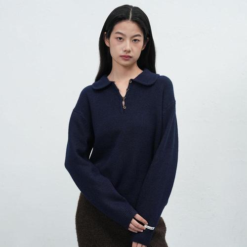 [제너럴아이디어]WOMAN 루즈핏 라운드 카라 풀오버 [NAVY] / WBE4L05535
