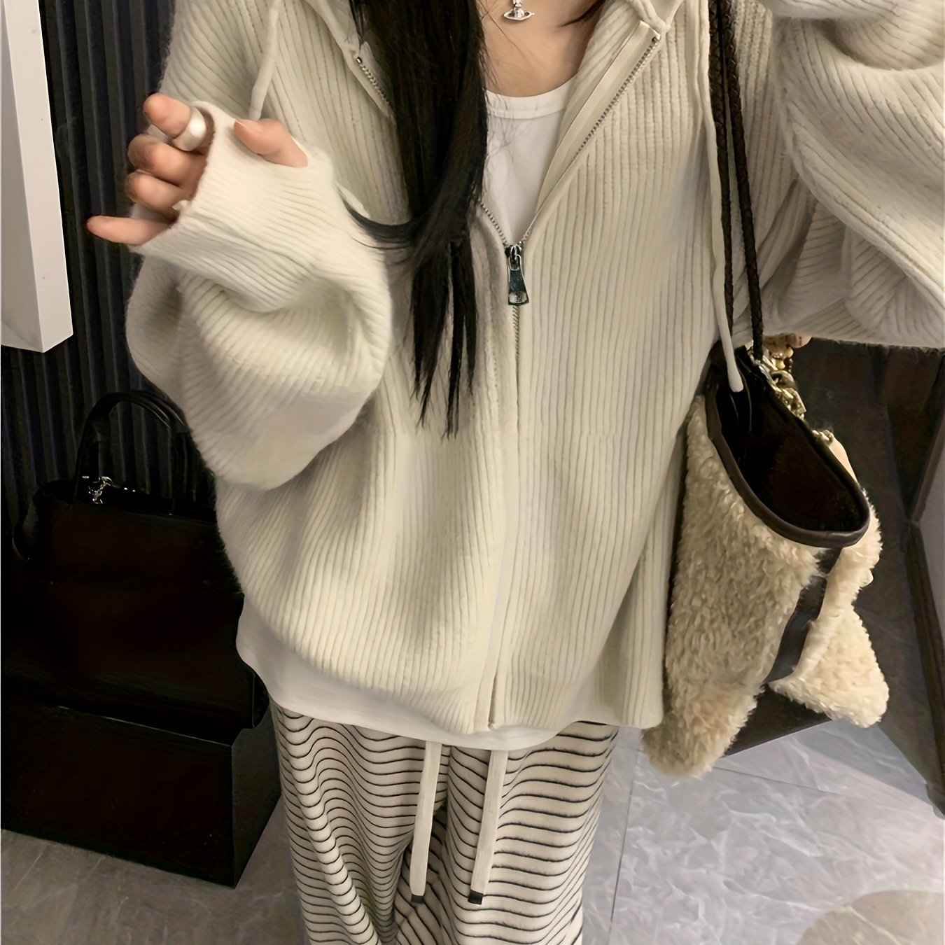 TEMU 여성용 후드 지퍼업 스웨트셔츠, 2025 가을/겨울 신상 레이지 하이엔드 가디건 스웨트셔츠 코트
