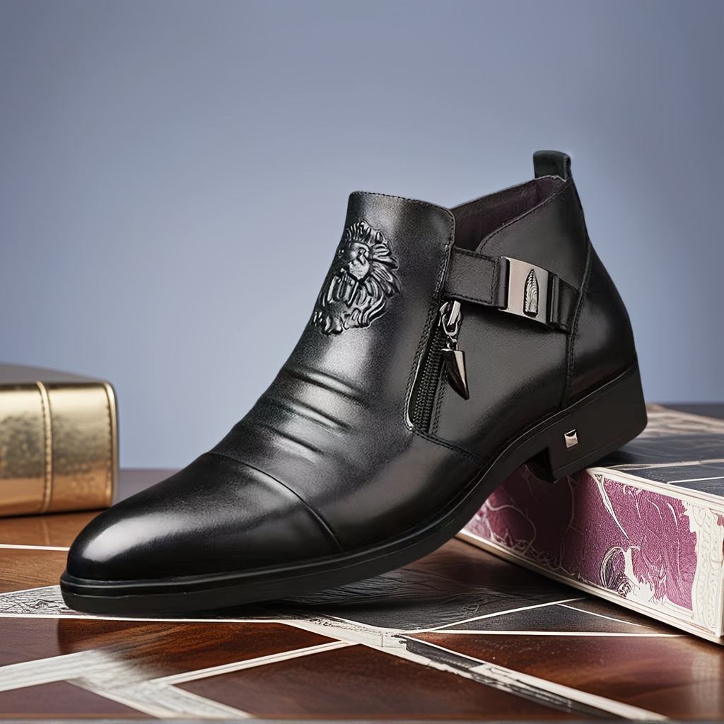 TEMU 클래식 남성화 - 2025 가을/겨울 신상 남성 비즈니스 캐주얼 앵클 부츠. 고급 소재 + 미끄럼 방지, 내구성 강한 고무 밑창, 편안하고 내구성 우수. 지퍼 디자인으로 쉽게 신고 벗기. 11가지 사이즈로 다양한 사용자에게 적합. 일상 캐주얼, 비즈니스 파티, 야외 출퇴근에 적합. 크리스마스, 할로윈, 이스터 선물로 이상적