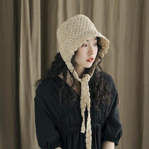 [다잇템][다잇템] 여자 모자 제주도룩 리본 해변 스웨터 챙 버킷햇_20086529_588872