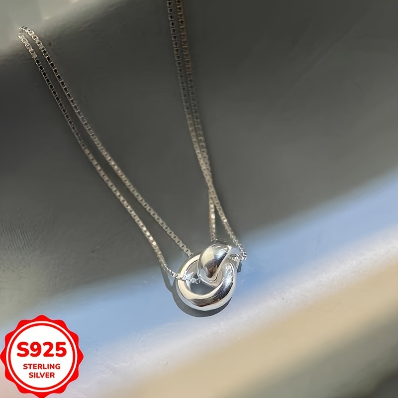 TEMU 실버 인터로킹 펜던트 더블 레이어 여성용 목걸이, 니치 라이트 럭셔리 초커