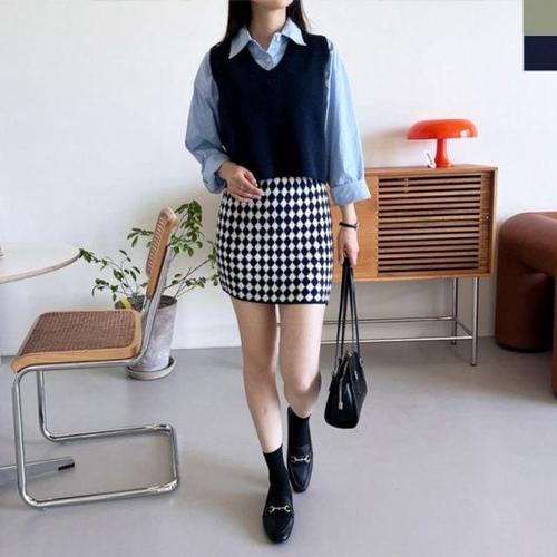 패턴 스커트 패턴스커트 니트조끼 조끼세트 니트 WFLMF07