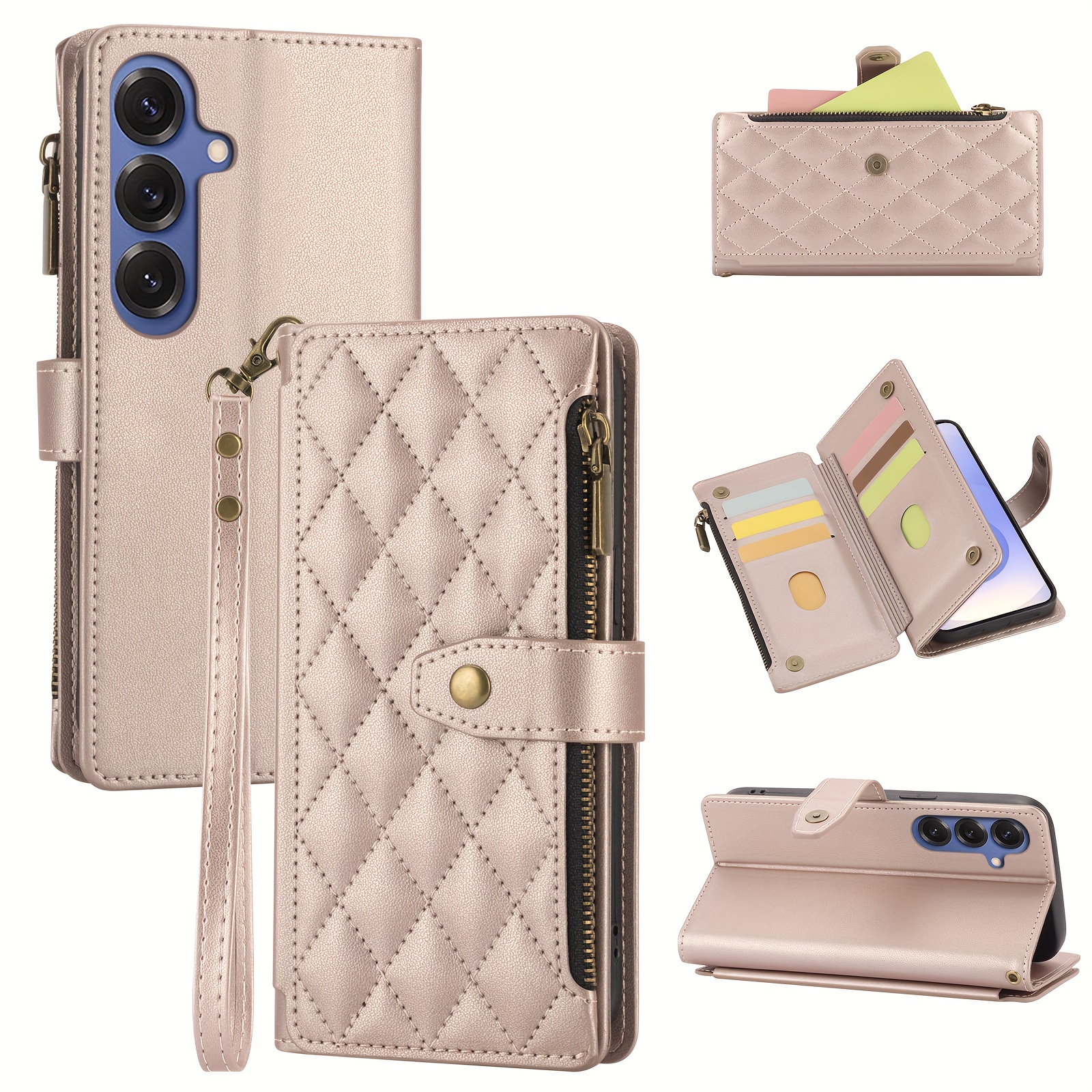 TEMU 휴대폰 케이스 - 삼성 S25 울트라/S24/S23/S22/S21/S20 FE 플립폰용 인조 가죽 지갑 스타일 보호 케이스, 다중 카드 슬롯 포함