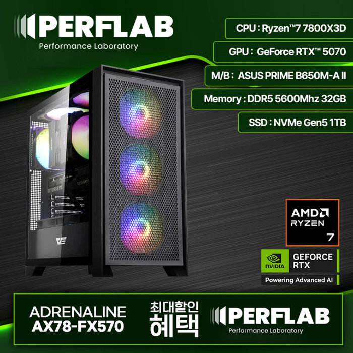PERFLAB 라이젠7 7800X3D RTX 5070 12GB 32GB 1TB 게이밍 컴퓨터 데스크탑 조립 PC