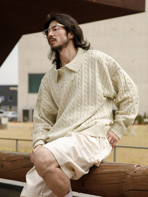 [모노폴로지]남자오픈카라니트 남자오버핏반팔니트