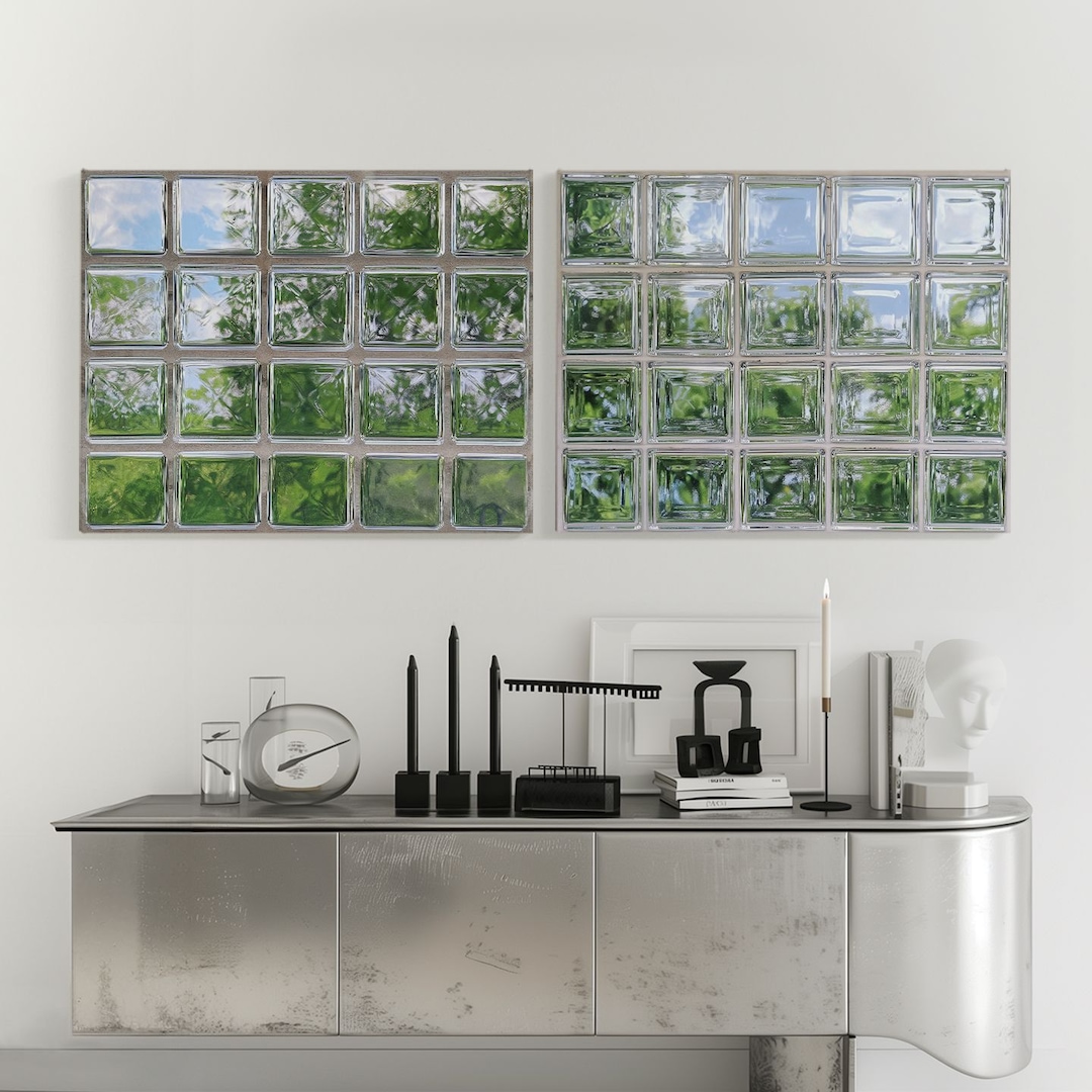 모던 디자인 유리 블럭 창문 거실 현관 인테리어 페이크 윈도우 캔버스 액자_8종