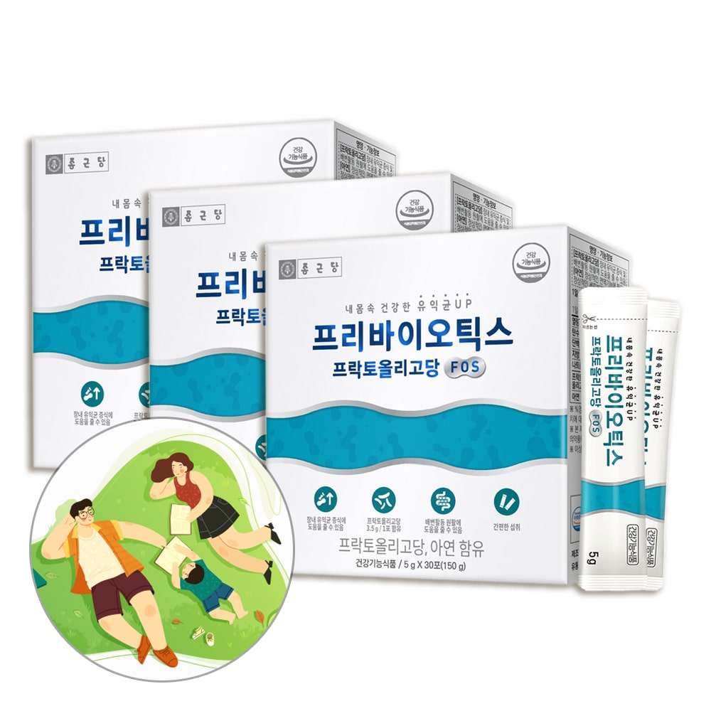 종근당 프리바이오틱스 프락토올리고당 FOS 유산균 30p, 150g, 3개