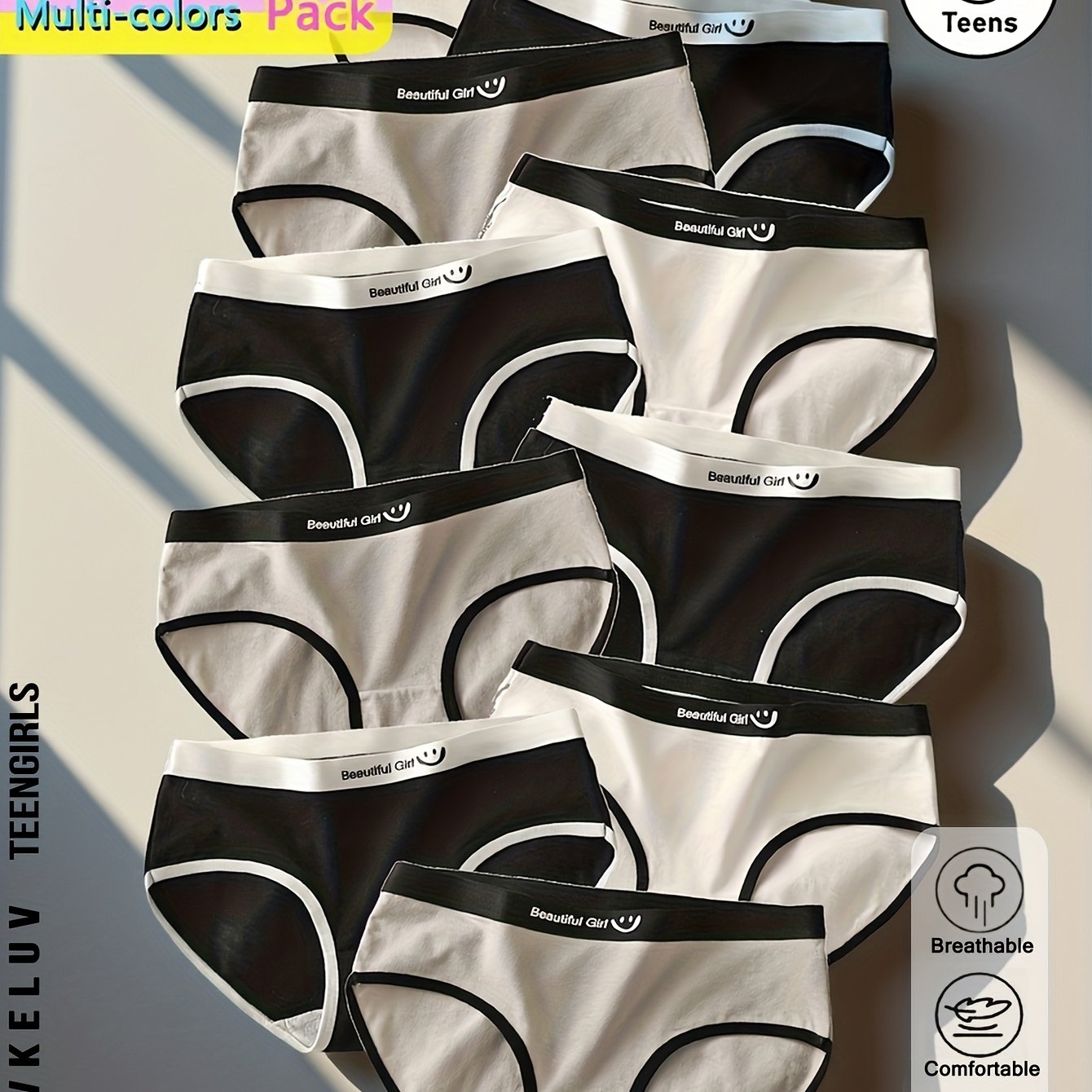 TEMU 여아용 레터 디자인 속옷 12매 세트 - 편안하고 신축성 있는 캐주얼 브리프, 블랙, 화이트, 그레이 혼합 색상으로 십대에게 적합
