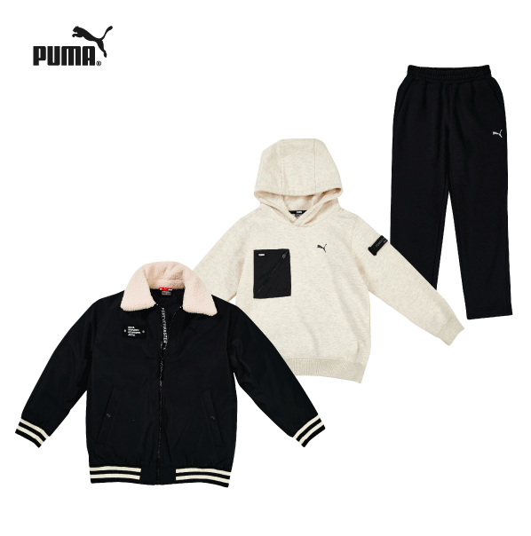 푸마 다운점퍼+후드티+바지 3종세트 유아동 키즈 주니어 한정특가