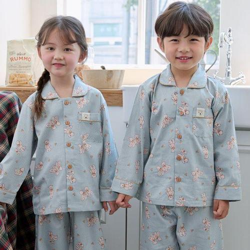 [알콩단잠]국내생산 아동잠옷 주니어 파자마 순면 곰돌이 파자마 실내복