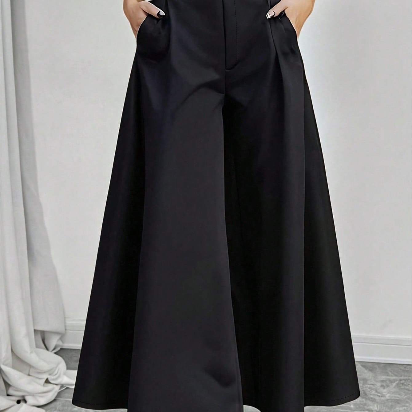 TEMU 버튼-지퍼 솔리드 컬러 와이드 레그 팬츠, 심플하고 우아한 디자인, 직장 및 데일리웨어에 적합, 스커트 팬츠 스타일, 포켓 포함, 핏감 좋은 봄 가을용, 벨트 미포함|치마바지
