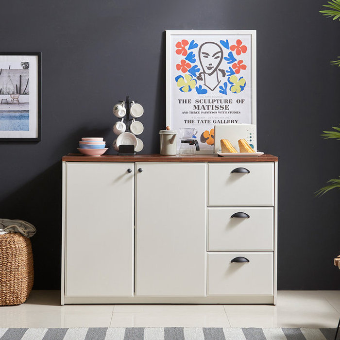 장인가구 아망드 슬라이딩 1200 3단서랍 주방 수납장 그릇 장식장 홈카페장