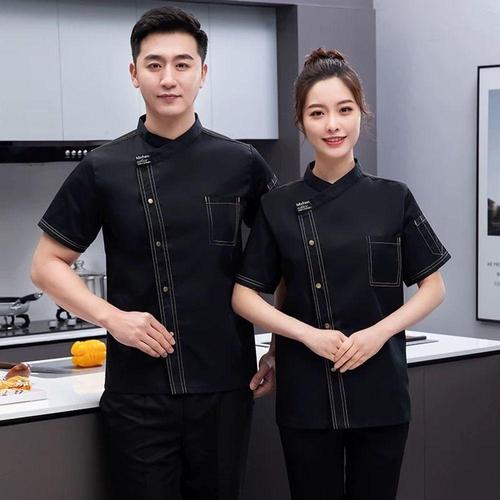 블랙 셰프 코트와 메시 경량 재킷 남성 반소매 유니폼 주방 레스토랑 베이커리
